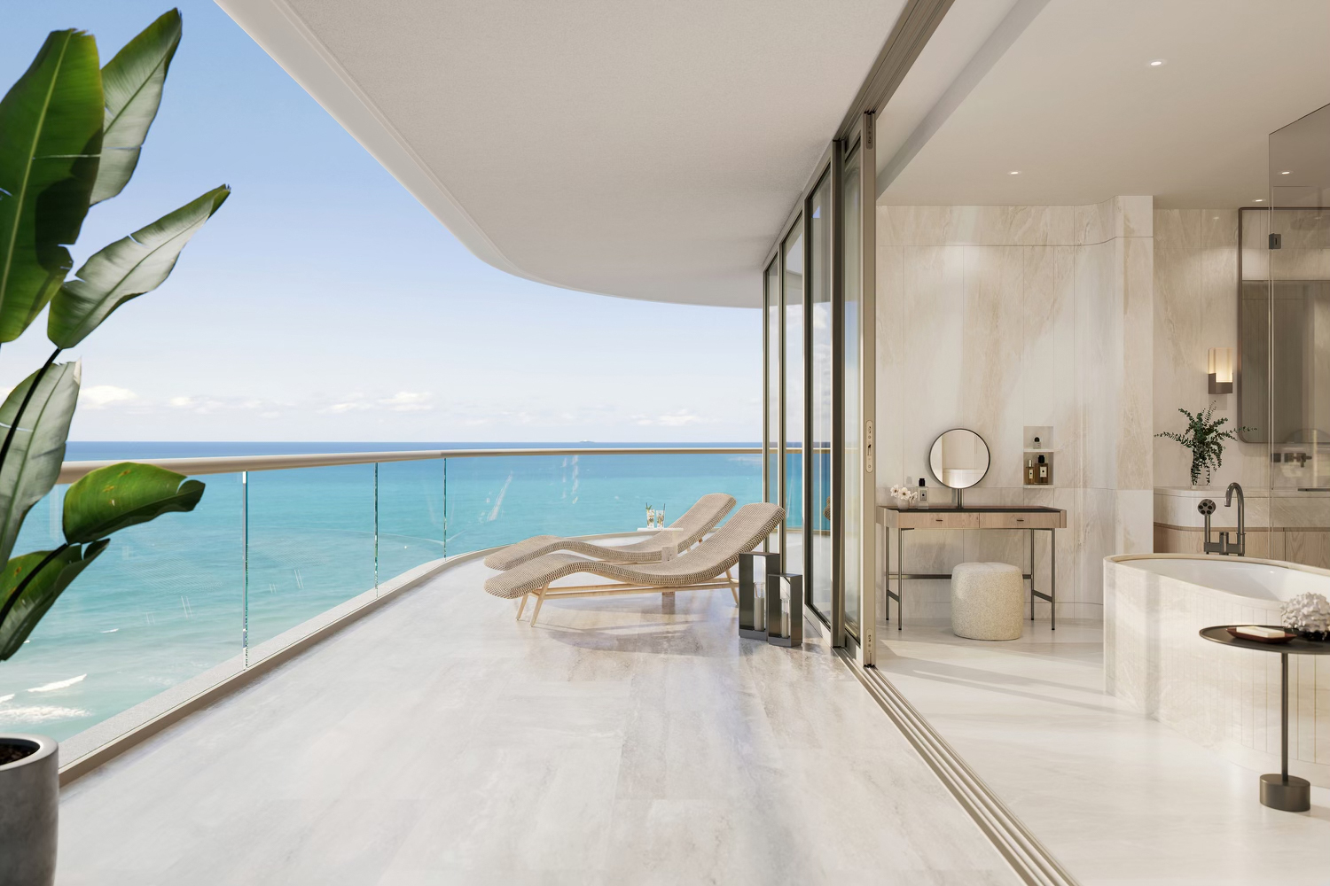 Units will have 10’ ceiling heights through floor 10, and 10'6" above that, floor-to-ceiling windows, and huge terraces dramatically angled at 45 degrees. Together, these elements ensure the interiors of every home in the building offer drop-dead gorgeous ocean views while maximizing privacy from adjacent residences—even the westernmost units will have sweeping views in both directions.