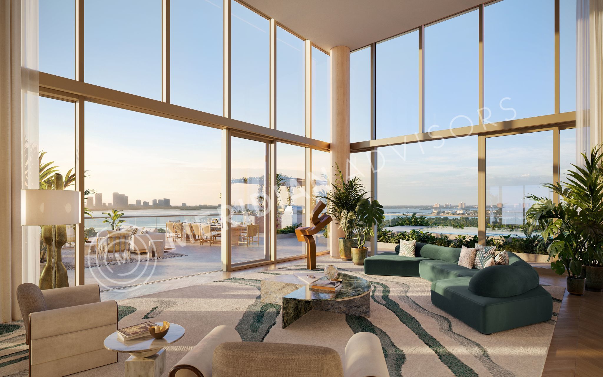 Above a multilevel underground parking garage is the 25’-tall lobby. A first ever of its kind, The Perigon will feature a resident-only Michelin-Starred concept by Chef Shaun Hergaatt. The building will also feature a speakeasy-style lounge, and nearly 14,000 square feet of amenities. Residential butlers, a house car, sprawling conservancy with daily breakfast bar, in-residence dining, and home management services from cleaning and maintenance to floral and pantry stocking are just some of the services residents can enjoy.